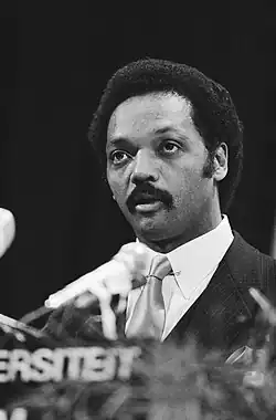 On International Women's Day (March 8),[50] another rally was held that drew about 4,000 supporters.[45] Political activist Jesse Jackson gave a speech at this event, and labor activist groups from the San Francisco Bay Area were well-represented.[50] In a further show of solidarity among labor unions, on April 12, a representative of Local 912 spoke at a union rally in Austin, Minnesota, which was the site of the then-ongoing 1985–1986 Hormel strike, about the similarities between the two strikes.[70] In addition to the Hormel strikers, Local 912 also tried to forge connections with other striking workers across the United States, including flight attendants who were on strike against Trans World Airlines.[71] The Local 912 strikers held a joint rally with the flight attendants in San Jose, California, which was followed by a rally in Watsonville.[71] Regarding the relationship-building with other striking workers, Betancourt stated, "we learned from them, what they did, what worked and didn't".[71] On June 29, the Strike Committee held another large rally in Watsonville that drew over 4,000 attendees, with a significant number of supporters from northern California, including members of Chicano organizations, labor activists, and members of the United Farm Workers (UFW).[63] Jackson, who by this time was seeking the presidency of the United States in the 1988 Democratic Party presidential primaries, again addressed the crowd, where he drew comparisons between the strike and the Selma to Montgomery marches during the civil rights movement.[63] While the IBT had been reluctant to allow Jackson to speak, the Strike Committee was in full support.[63] Jackson was one of the most vocal national advocates for the strikers,[13][65] and members of his National Rainbow Coalition participated in picketing and other forms of support for the strike.[72] In 1988, Betancourt served as a delegate for Jackson at the 1988 Democratic National Convention.[69]
