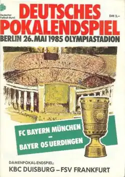 The 1985 DFB-Pokal final decided the winner of the 1984–85 DFB-Pokal, the 42nd season of Germany's premier knockout football cup competition. It was played on 26 May 1985 at the Olympiastadion in West Berlin.[2] Bayer Uerdingen won the match 2–1 against Bayern Munich to claim their first cup title. This was Bayern's first cup final loss in what was their eighth final.