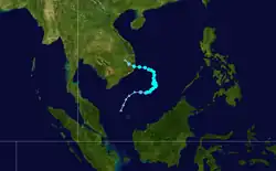 | TD | September 14–15 | Tropical depression | Not specified | 1,004 hPa (29.65 inHg) | Vietnam, Cambodia | None | None | |