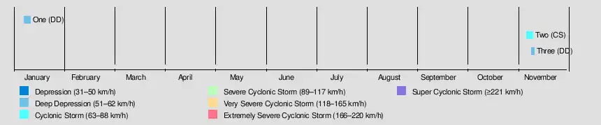 - ^ "Frequently Asked Questions: What is the annual frequency of Cyclones over the Indian Seas? What is its intra-annual variation?". India Meteorological Department. 2012. Archived from the original on May 21, 2015. Retrieved June 8, 2012.