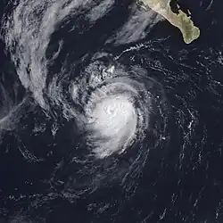 Only one tropical storm developed in June. In July, six named storms formed. Out of these storms, Hilary was the only storm to reach major hurricane status.[3] The month of August had a total of five named storms, four of which became hurricanes. However, August did not feature any major hurricanes, though Hurricane Jova came close, peaking as a moderate Category 2. The month of September held the same number of named storms as August, with five named storms.[3] The month also was the carrier of the strongest hurricane on record at that time (that had its intensity estimated from satellite imagery), Hurricane Max, a strong Category 4 hurricane. Hurricane Norma was a Category 1 hurricane on the Saffir–Simpson scale, which dissipated to the south of the Baja California Peninsula.[5] The month of October featured only two tropical cyclones. The first system, Ramon, was a Category 4 hurricane.[3]
