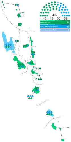 All 46 seats in Parliament 23 seats needed for a majority | ||||||||||||||||||||||||||||||