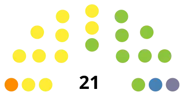 All 21 seats in Parliament 11 seats needed for a majority | ||||||||||||||||||||||||||||||||||||||||||||||||||||||||||||||||||||||||