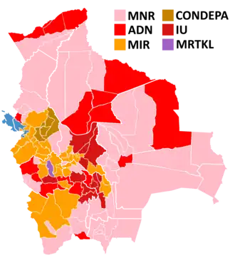 | Gonzalo Sánchez de Lozada | Revolutionary Nationalist Movement | 50 | 34.01 | |