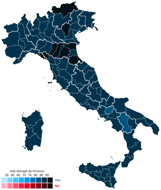 ![]() Results of the referendum by province. Blue indicates a majority in favour; red indicates a majority against. | ||||||||||||||||||||||
