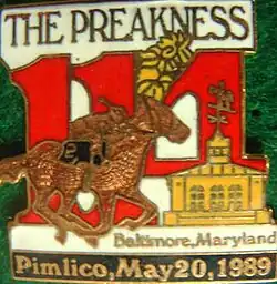 The 1989 Preakness Stakes was the 114th running of the Preakness Stakes thoroughbred horse race. The race took place on May 20, 1989, and was televised in the United States on the ABC television network. Sunday Silence, who was jockeyed by Pat Valenzuela, won the race by a nose over runner-up Easy Goer. Approximate post time was 5:35 p.m. Eastern Time. The race was run over a fast track in a final time of 1:53-4/5.[1] The Maryland Jockey Club reported total attendance of 98,896, this is recorded as second highest on the list of American thoroughbred racing top attended events for North America in 1989.[2]