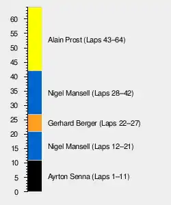 The win, Prost's third in succession and fourth of the season, gave him the lead of the Drivers' Championship, two points ahead of Senna.