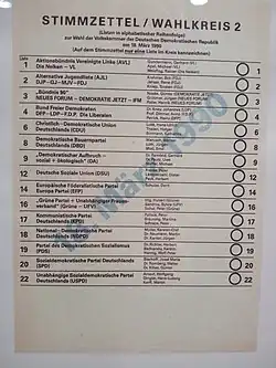 - ^ "Volkskammer Election 1990". bpb.de. 19 March 2009.