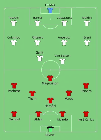 The 1990 European Cup final was a football match between AC Milan of Italy and Benfica of Portugal, played on 23 May 1990 at the Praterstadion in Vienna, Austria. The winning goal came in the 68th minute for Milan, when Frank Rijkaard ran through the opposing defence and scored the only goal of the match.[1][2]