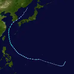 The 1990 Pacific typhoon season was another active season, with 31 storms being named during the year. It had no official bounds; it ran year-round in 1990, but most tropical cyclones formed in the northwestern Pacific Ocean between May and November.[1] These dates conventionally delimit the period of each year when most tropical cyclones form in the northwestern Pacific Ocean.