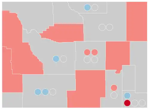 Winner by party  Best-performing candidate by county Republicans: 40–50% 50–60% 60–70% >90%Democrats: 30–40% 40–50% 50–60% 60–70%