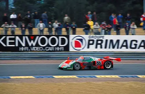 The third factory team to build a car for the 3.5-litre formula was Peugeot. Following a successful time in rallying, they aspired to emulate their compatriot company Renault and to win in endurance racing. The company had supported the WM team in their quest to break 400 kp/h at Le Mans. The Peugeot works team had raced at Le Mans previously, in 1926, when they were the dominant team in motorsport. The new Peugeot 905 had been designed and built at the Peugeot Talbot Sport factory near Paris led by André de Cortanze, who had designed the Renault winners.[21][22] The monocoque chassis and shell was made of advanced composite and tested at the Dassault aircraft wind-tunnel. Jean-Pierre Boudy headed the engine team, having already worked with the Renault team. The V10 was angled at 80 degrees with four valves per cylinder, generating 600 bhp with a Magneti-Marelli engine-management system. An innovative transaxle ran the first and second gears through the front wheels, while the third to sixth went to the rear.[21] The car was unveiled in the middle of 1990 and ran in the final two races of the season. Two cars ran this season, managed by team director Jean Todt. Mauro Baldi and Philippe Alliot caused a sensation by winning the opening round at Suzuka and Baldi was the reigning World Drivers Champion (with Sauber-Mercedes) alongside Jean-Louis Schlesser. The second car was run by former F1 world champion Keke Rosberg with Yannick Dalmas, matching up experience with young French F1 prospects. The team were joined by French drivers Jean-Pierre Jabouille and Pierre-Henri Raphanel.[21][19]