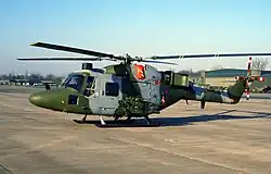 ZE380 was struck by nine rounds in total, seven 12.7mm and two 7.62mm rounds, causing extensive damage to the aircraft and forcing it to land in a field by the Drummill Road near Silverbridge. An internal incident report described the aircraft as having been "shot down".[9] However, despite the damage dealt to the airframe the crew escaped injury. After making an emergency landing the crew established a defensive perimeter; the IRA reported firing at downed aircraft[10] but this account wasn't corroborated by the crew.[9] The second Lynx, undamaged, landed nearby but the crew of ZE380, concerned that locals sympathetic to the IRA might destroy the downed aircraft outright, opted to maintain their position at the site, armed with the GPMG and two compact HK53 carbines.[9] At 17:33 the crew were recovered by an RAF Puma helicopter and later the stricken Lynx was airlifted by a Chinook heavy-lift helicopter to RAF Aldergrove in County Antrim.[9]
