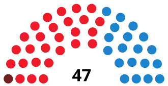 The 47 members of the Cortes of Castilla–La Mancha were elected using the D'Hondt method and a closed list proportional representation, with an electoral threshold of three percent of valid votes—which included blank ballots—being applied in each constituency. Additionally, the use of the D'Hondt method might result in an effective threshold over three percent, depending on the district magnitude.[2] Seats were allocated to constituencies, corresponding to the provinces of Albacete, Ciudad Real, Cuenca, Guadalajara and Toledo. Each constituency was entitled to an initial minimum of five seats, with the remaining 22 allocated among the constituencies in proportion to their populations.[1][3]