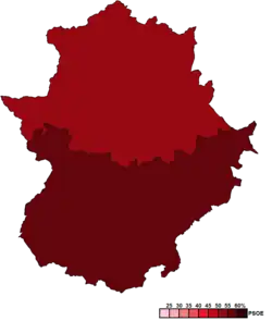 ![]() Constituency results map for the Assembly of Extremadura | |||||||||||||||||||||||||||||||||||||||||||||||||||||||||||||||||||||||||||||||||||||||||