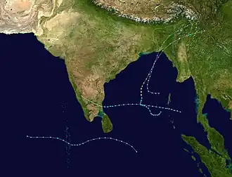 The final storm of the season, which formed in the eastern Bay of Bengal on November 9, hit eastern India as a 45 mph tropical storm on the 15th. It dissipated the next day over the country.