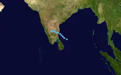 The Cyclonic storm brought torrential rain and flash floods across southern India when it made landfall. Twenty-four-hour rainfall totaled 480 millimetres (19 in) at Karaikal.[5] As a direct result of the flooding at least 40 people died.[6]
