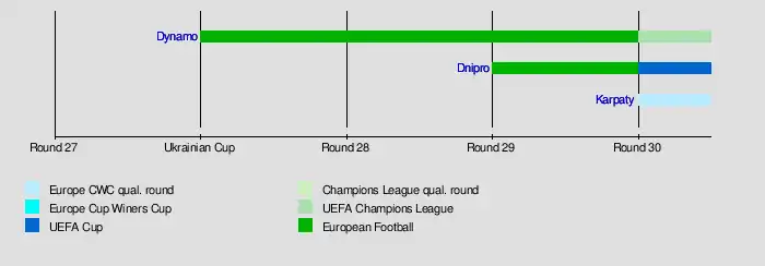 2 Dnipro Dnipropetrovsk 30 18 8 4 51 20 +31 44 Qualification to UEFA Cup first round