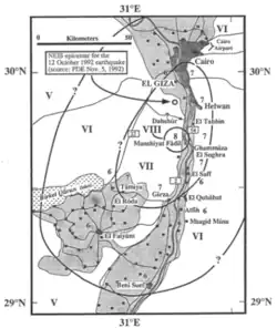 - ^ Fergany, Elsayed A.; Sawada, Sumio (1 January 2009). "Estimation of Ground Motion at Damaged Area During 1992 Cairo Earthquake Using Empirical Green's Functions". Seismological Research Letters. 80 (1): 81–88. Bibcode:2009SeiRL..80...81F. doi:10.1785/gssrl.80.1.81. ISSN 0895-0695. Retrieved 9 June 2010.