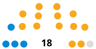 Party Seats Gains Losses Net gain/loss Seats % Votes % Votes +/−