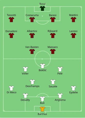 The final, which followed the second-ever UEFA Champions League group stage, saw Ivorian-born Marseille defender Basile Boli score the only goal of the match in the 43rd minute with a header to give OM their first European Cup title. It was the first time a French team had won the European Cup, Marseille would be the only French club who have won the Champions League until the 2025 win of Paris Saint-Germain against another Milanese club, also in Munich. No other club from the French league would reach the final until Monaco in 2004; they lost 3-0 to Portuguese side Porto, however.