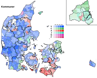 | Danish Social Liberal Party | 176,480 | 8.48 | 1 | +1 |