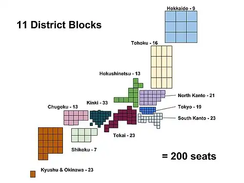 Finally, on January 29, 1994, the parties agreed upon and passed the electoral reform law. This law changed the electoral system from having 130 MMD and 511 seats to the new system of 300 SMD seats elected through plurality voting, and 200 proportional representation seats elected from eleven regional blocs.[3]