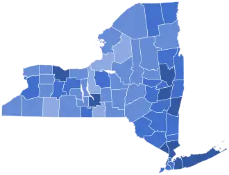 While the race was very close overall, Pataki won by running up huge margins outside of New York City. Cuomo won only one county outside of the Five Boroughs, Albany County, while also failing to sweep the Five Boroughs unlike in his previous three successful runs, losing Staten Island.