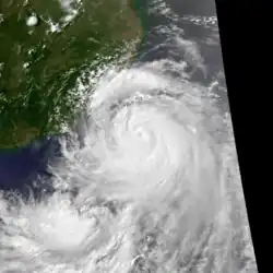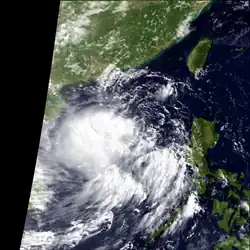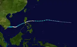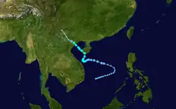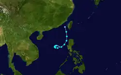 The first warning was issued a day later when the amount of deep convection near the centre increased as the depression neared the Philippines. While over the Philippine islands, a large mesoscale convective system (MCS) developed near the centre of the tropical depression, something that would occur again later while the system was west of Luzon.[15] Soon after the second MCS weakened, the system made landfall in central Vietnam on May 26, and quickly dissipated when inland.[4] The Hong Kong Observatory tracked this system as a weak tropical depression from May 25 UTC when it was about 520 km (320 mi) southeast of Xisha for about 24 hours before it dissipated.[1]