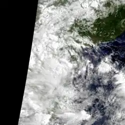 Tropical Depression 07W developed in the monsoon trough on June 29, well east of the Philippines.[20] Warnings were initiated at 0000 UTC June 3[20] when the system was approximately 250 km (160 mi) southeast of Dongsha.[4] It reached its maximum intensity shortly before landfall[20] on July 4.[4] Flooding associated with Tropical Depression 07W in western Guangdong Province killed four people and left two others missing, and destroyed over 6,700 houses while leaving another 50,000 damaged. 120,000 hectares (1,200 square kilometres; 460 square miles) of farmland were ruined, and irrigation facilities were damaged.[1] Total losses from the storm in Guangdong were estimated to be $114 million (1994 USD).[20] In Guangxi Province, the storm killed six others, and left over 30,000 people homeless.[1]