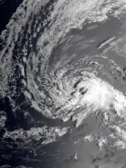 | Peak intensity | 95 km/h (60 mph) (10-min); 985 hPa (mbar) |
