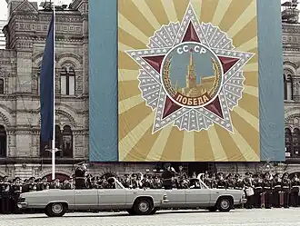 The 1995 Moscow Victory Day Parades (Russian: Парад Победы, romanized: Parad Pobedy) were two military parades held on 9 May 1995 to commemorate the historic 50th anniversary golden jubilee of the capitulation of Nazi Germany to the Soviet Union in 1945. The parades marked the Soviet Union's victory in the Great Patriotic War.[1] These were the first post-Soviet military parades held in Russia the first one being in held for veterans on Red Square at 8:00 in the morning followed by another parade of infantry and military equipment at Poklonnaya Hill at 3:00 in the afternoon.