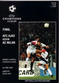 The 1995 UEFA Champions League final was an association football match played on 24 May 1995 at the Ernst-Happel-Stadion in Vienna, Austria, to determine the winners of the 1994–95 UEFA Champions League, the 40th season of Europe's premier club competition organised by UEFA. It was contested by Dutch side Ajax and Milan of Italy in a rematch of the 1969 final. Milan were appearing in their third consecutive UEFA Champions League final, as well as aiming to win a sixth European Cup/UEFA Champions League title, which would have tied them with Real Madrid's record. However, after 85 minutes, Ajax striker Patrick Kluivert scored the only goal of the game to give Ajax the title; at the age of 18 years, 327 days, that made him the youngest player to score in a UEFA Champions League final.[2][3]