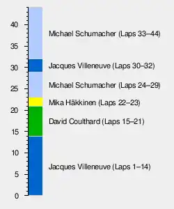 The Tyrrells of Mika Salo and Ukyo Katayama finished in seventh and eighth places respectively; however, a fast early stop during the safety car period saw Salo running as high as third at one point.