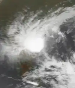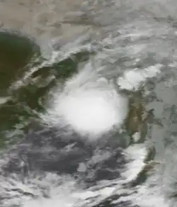 While the previous storm was paralleling the east Indian coastline, another disturbance formed off the west coast on June 15, also associated with the monsoon. The new area of convection persisted,[3] developing a distinct circulation by the next day. Early on June 17, a depression developed about 365 km (227 mi) west of Mumbai.[1] At 18:00 UTC that day, the JTWC classified it as Tropical Cyclone 04A, after the wind field became more defined.[3] The system moved to the northeast within the influence of the monsoon, and quickly intensified due to an anticyclone aloft providing favorable conditions.[1][18] On June 18, the IMD upgraded the system to a cyclonic storm, and further to a severe cyclonic storm by 18:00 UTC that day. At 23:00 UTC, the storm made landfall on Gujarat near Diu, only the fourth cyclone since 1891 to strike the state in June. An hour later the IMD assessed peak 3-minute winds of 110 km/h (70 mph), based on the appearance of an eye feature.[1] Meanwhile, the JTWC assessed slightly stronger 1-minute winds of 120 km/h (75 mph), equivalent to a minimal hurricane.[3] The storm turned northward and slowly weakened, degenerating into a remnant low over Rajasthan on June 20 before being swept up by an approaching trough.[1]