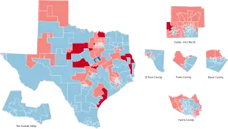 Democrats had fully controlled the redistricting process in 1991, and Republicans sued over the Texas House's map. The courts partially overhauled the map as a result of these lawsuits.[4] Democrats codified the court's map into law in a January 1992 special session.[5] The 1995 lawsuit Thomas v. Bush further altered the maps, as the courts reached a settlement with the legislature to alter the several districts in Harris, Dallas, and Bexar Counties for the 1996 elections.[4][6][7]