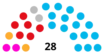 All 28 seats in the General Council 15 seats needed for a majority | ||