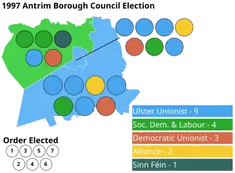 - ^ a b c Antrim District Council Elections 1993-2011, Northern Ireland Elections