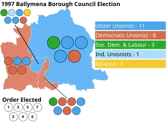 - ^ a b c d Ballymena District Council Elections 1993-2011, Northern Ireland Elections