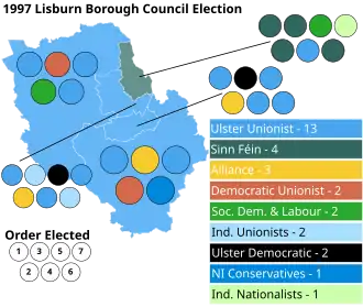 - ^ a b c d e Lisburn District Council Elections 1993-2011, Northern Ireland Elections