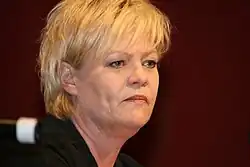 While the left-wingers lost most of the leading party positions to the right-wing faction, most right-wing stances were kept out of the party's new program. It was voted if the party still should fight against Norwegian membership in NATO and the WTO, the majority of the party voted against NATO and the WTO. This was seen as a victory for the left-wingers of the party. Another problem facing the right-wingers was that the majority of the delegates voted for a more critical stance against capitalism and the Norwegian Labour Party; which was voted a "tactical enemy" against the Socialist Left, and stressed the importance that the party could not collaborate with either the Labour or the Centre Party. This no to collaboration with other parties made it clear that most members were not interested in further continuing with the modernisation program started by Solheim. However Halvorsen did not share the same belief or principals which were ratified by the national convention, seeing that she came from the moderate faction of the party.[10] She would later disobey the national convention saying she and the party would be open to a government coalition with the Labour and the Centre Party.[11]