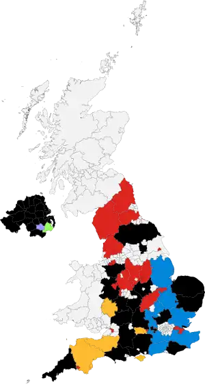 All 34 non-metropolitan counties, 21 out of 46 unitary authorities, 1 out of 238 English districts, 1 sui generis authority and all 26 Northern Irish districts | |||||||||||||||||||||||||||||||||