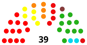 Election map of results based on parties. Colours are based on the results table on the left