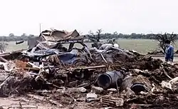 ![]() A house that was obliterated by the tornado. The car shown is where six people took shelter during the tornado. | |