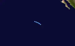 A tropical wave moved across the Atlantic and Caribbean in early July. While crossing Central America on July 11 and July 12, the system produced gusty winds and heavy rainfall, especially in Honduras, Nicaragua,[3] and Mexico, where precipitation reached 15.75 inches (400 mm) in Coyutla, Veracruz.[4] By July 13, the wave and associated low pressure area emerged into the Pacific Ocean. The system organized further and developed into Tropical Depression Three-E at 1200 UTC on July 14, while located about 290 miles (470 km) west-southwest of Manzanillo, Mexico. It initially headed west-northwestward until July 15, when it curved west-southwestward. The depression failed to strengthen further and dissipated at 1800 UTC on July 15, while located about 460 miles (740 km) southwest of Cabo San Lucas, Mexico.[3]
