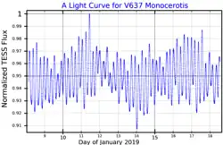 - ^ a b c d e Balona, L. A.; et al. (July 2002). "Short-period line profile and light variations in the Beta Cephei star 19 Monocerotis" (PDF). Monthly Notices of the Royal Astronomical Society. 333 (4): 952–960. Bibcode:2002MNRAS.333..952B. doi:10.1046/j.1365-8711.2002.05487.x.