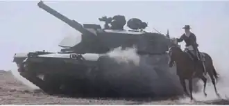 107th ACR horse soldier rides with M1 tank crew representing 107th Cavalry past & present.