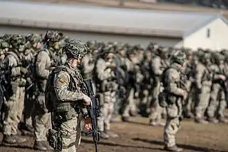 The 1st Division (Lithuanian: Pirmoji divizija) is the main military unit of the Land Forces of the Lithuanian Armed Forces. The division is planned to reach full operational capacity by 2030.[1]