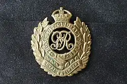 ![]() A Great War era cap badge of the Royal Engineers with the crown & cypher of George V | |