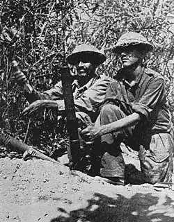 During the Second World War, the 1st Punjab Regiment suffered a total of 5510 casualties, including 1291 killed.[4] The 2nd Battalion received more gallantry awards than any other unit of the Indian Army. These included a posthumous Victoria Cross to Subedar Ram Sarup Singh for gallantry in action on Kennedy Peak in Burma in 1944, and a Distinguished Service Order to Lieutenant Colonel Sarbjit Singh Kalha for his actions on the Ngakyedauk Pass in Burma in 1944. The 3rd Battalion was nominated for parachute training in June 1946 to join the 2nd Indian Airborne Division. However, soon after completing its training in 1947, the 3rd (Para) Battalion 1st Punjab Regiment was engaged in quelling communal riots and in July, was detailed to join the Punjab Boundary Force, formed to keep the peace on the new East-West Punjab border. The 5th Battalion was sent to Japan as part of the British Commonwealth Occupation Force.[5]